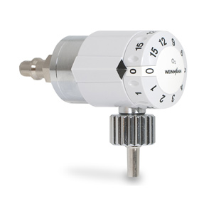 - Durchflussausgang, dosierbar in den Stufen 1, 2, 3, 4, 5, 6, 9, 12, 15 l/min, UNF 9/16