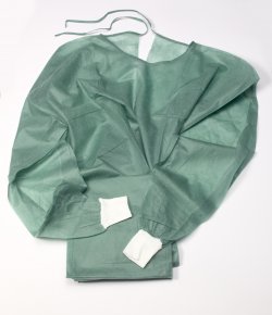 Vlies Besucherkittel, dunkelgrün zum Binden, 140 x 160 cm (LxB), extra gross, mit Trikotbündchen. Packung a. 100 Stück.