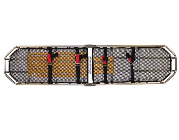 Das umlaufende Griffrohr hat einen Durchmesser von 2,5 cm. Kopf- und Fußende sind zusätzlich verstärkt. Die Rückenauflage bietet Komfort und Stabilität für den Patienten. Speziell angebrachte StratLoad Befestigungspunkte am Hauptrahmen der Korbtrage dienen zur schnellen Befestigung der Abseilspinne.
